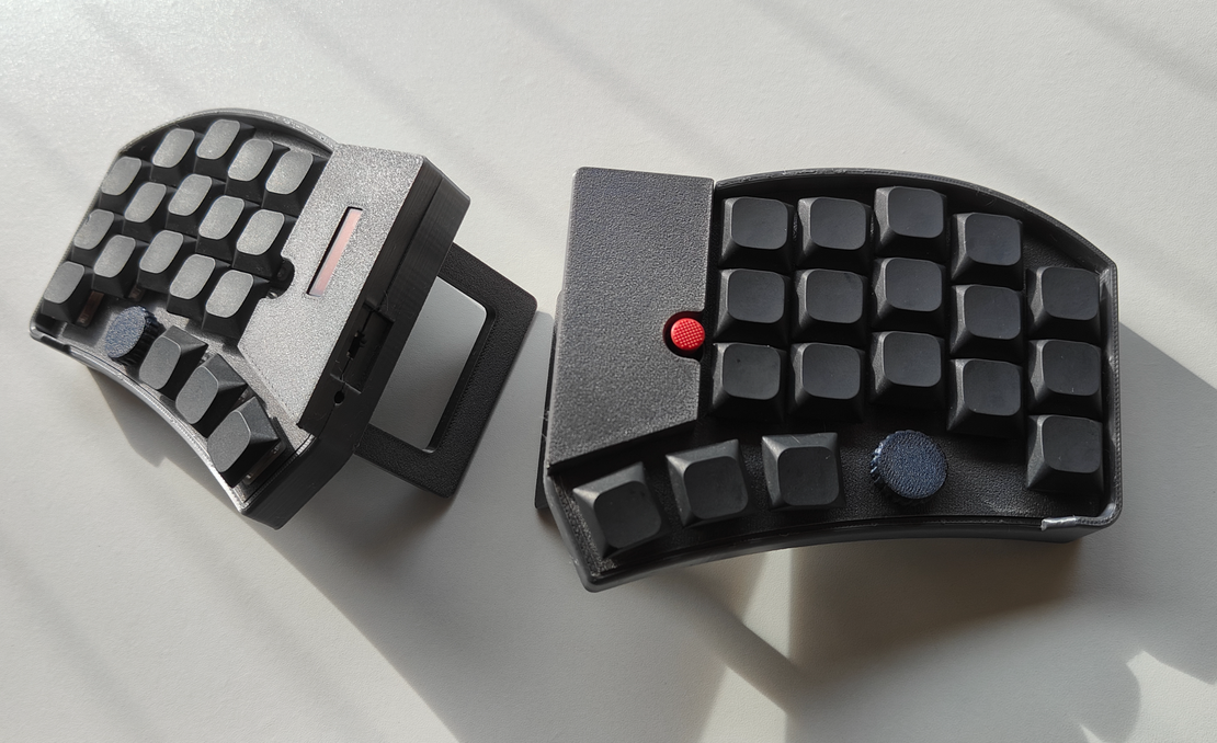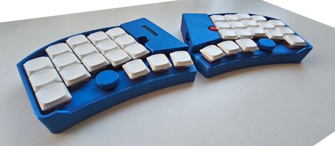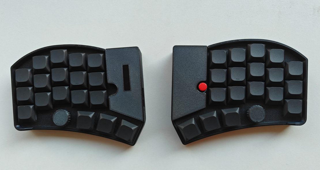 - OLED Status: OLED display on the left showing the current status of both halves.